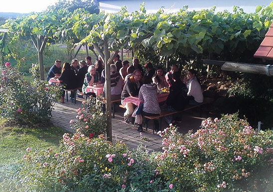 Die kleinste Wein- und Sektkellerei bietet für ca. 25 Personen in der Stube und an der Schank angenehmen Platz, bei schönem Wetter ist im Freien unter der Laube für ca. 30 Personen Platz.